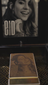 💎يحتوي على عطر فاخر (من "ماء الذهب" أو اختيارك) محفور عليه اسمك وصورتك على سطح ذهبي.