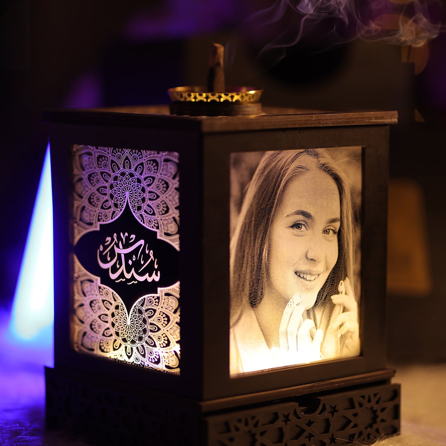 قم باختيار صورة لنقشها على جانبي مبخرة البخور بحيث تكون مضيئة.