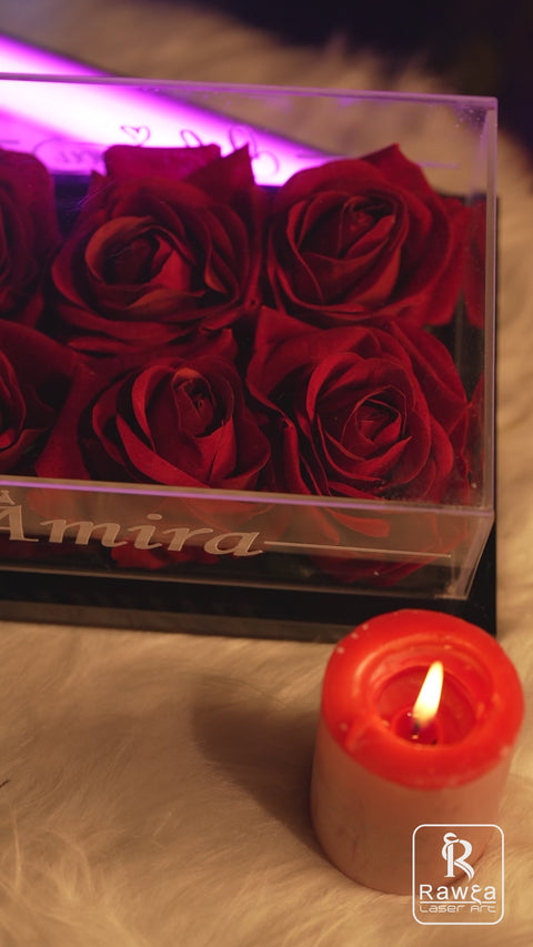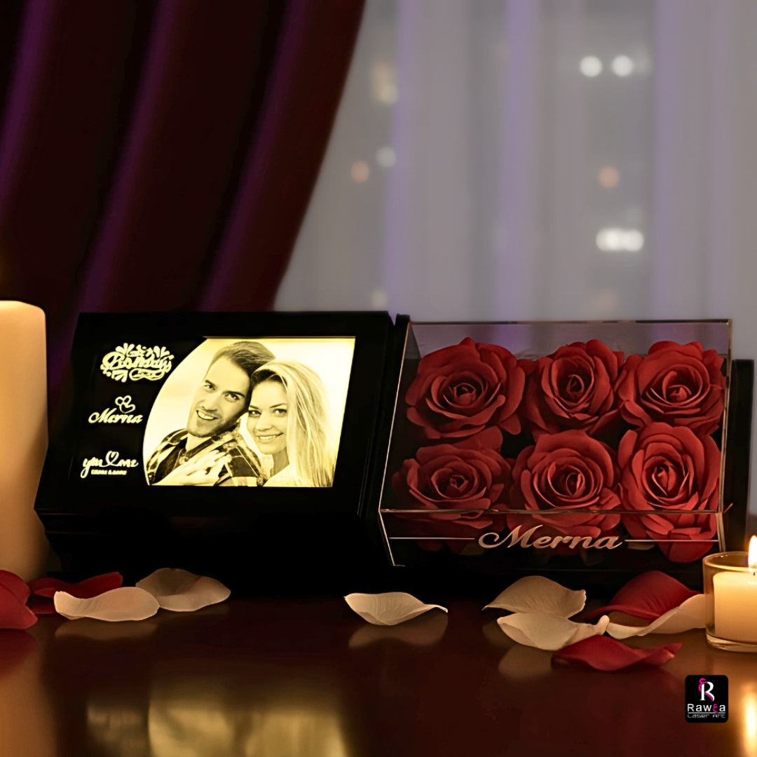 بوكس الورد المضيء من روعة ليزر آرت ليس مجرد هدية، بل هو تجربة متكاملة تجمع بين الأناقة والتخصيص والأثر البصري.