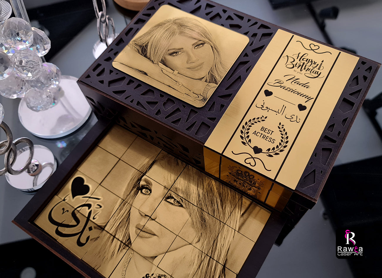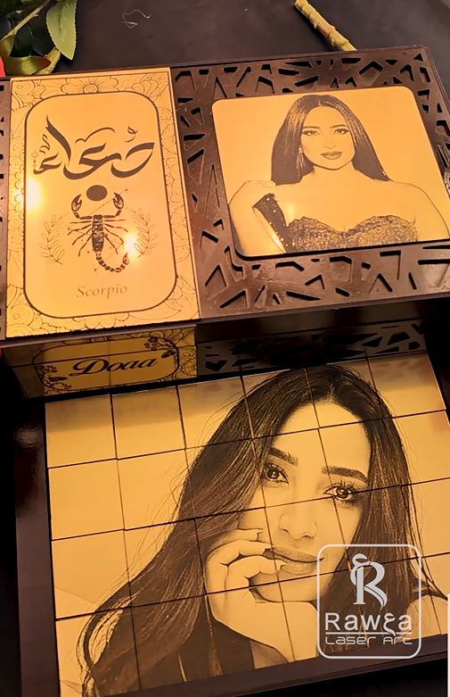 بوكس شيكولاتة باتشي محفور عليها أسماء وصور من روعة ليزر آرت ✅