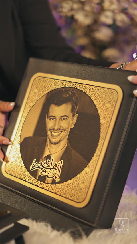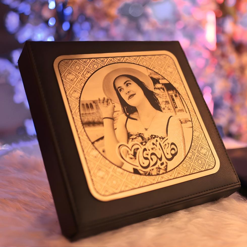 - بوكس من الجلد المحفور بالصور والأسماء التي تختارها.
