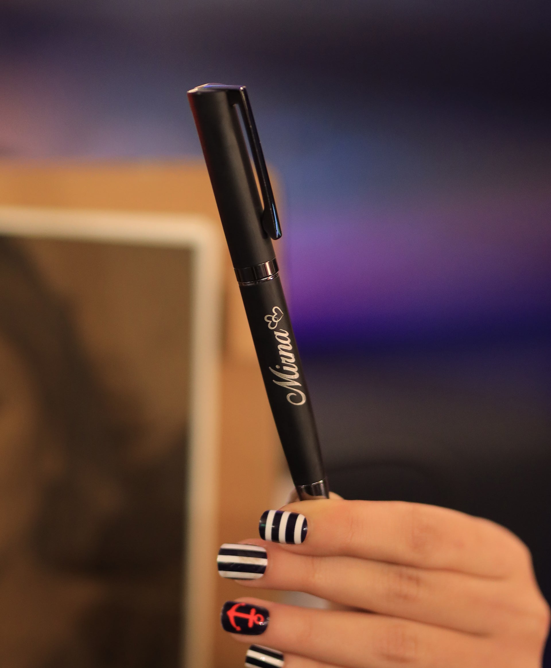 - نقش الاسم على القلم الأنيق لإكمال المجموعة.